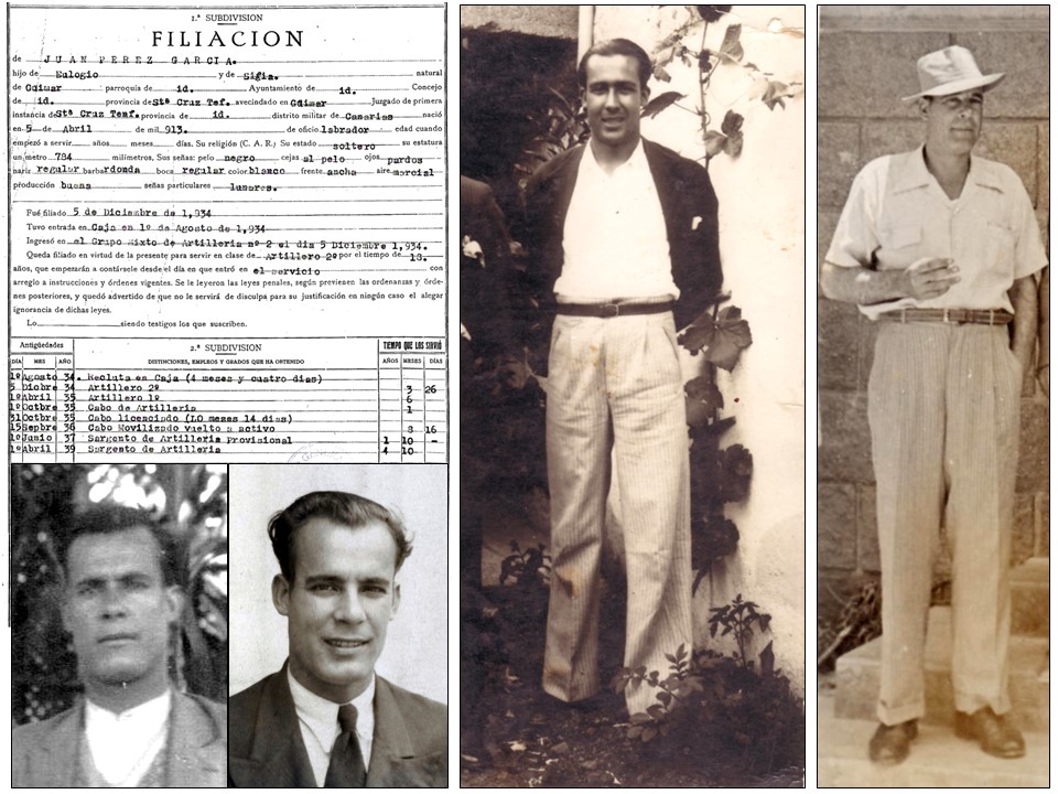 Nuestro biografiado creció en el seno de una familia de agricultores, por lo que esa fue también su primera profesión. Simultáneamente, desde su adolescencia se sintió atraído por la lucha canaria, llegando a ser un luchador destacado del primer bando o equipo de El Escobonal, actividad deportiva en la que fue conocido como “La Mediana”. Además, en su juventud, durante la II República, tuvo una intensa actividad política y sindical, pues fue delegado local de la UGT y presidente fundador de la Agrupación Socialista Obrera del Escobonal; por entonces también prestó el servicio militar obligatorio, en el que alcanzó el empleo de cabo de Artillería. Luego, el comienzo de la Guerra Civil lo llevó por otros derroteros y sufrió un cambio drástico en su vida, pues al ser movilizado siguió la carrera militar en el Ejército Nacional, lo que le libró de una dura represión; alcanzó el empleo de sargento provisional y fue condecorado con la Cruz Laureada de San Fernando, por méritos de guerra. Luego fue confirmado como sargento efectivo de Artillería y, como tal, prestó sus servicios profesionales hasta su retiro. Casado en Menorca, al pasar a la reserva se estableció con su familia en su pueblo natal de El Escobonal (Güímar), donde vivió algunos años, pero luego se trasladaron a Santa Cruz de Tenerife, donde ya permaneció el resto de su vida.